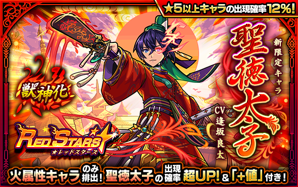開催期間中、「聖徳太子」は 出現確率が超UP&+値MAX(獣神化前)で排出!