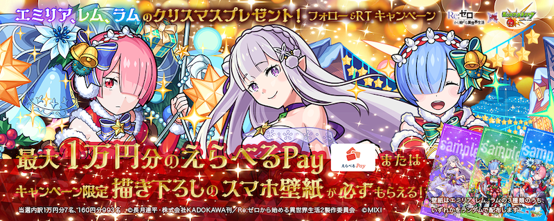 TVアニメ『Re:ゼロから始める異世界生活』と「モンスト」の、クリスマス仕様のコラボイベントが12月16日(金)12:00(正午)より期間限定で開催!