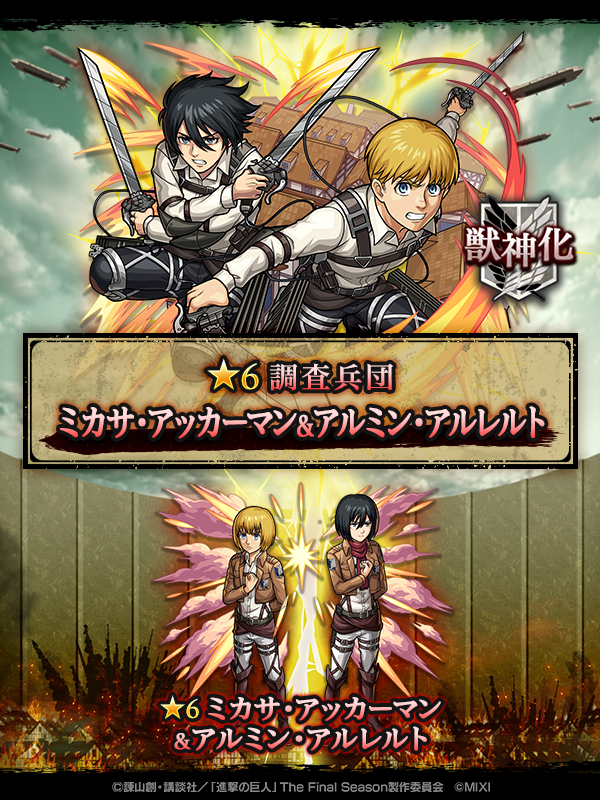 | ミカサ・アッカーマン&アルミン・アルレルト | 獣神化前(★6) | 火 |