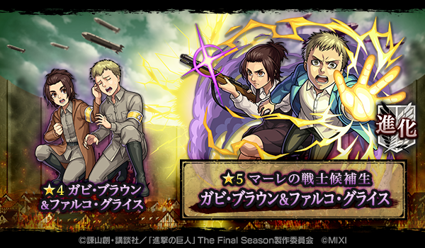 コラボ期間中、フレンドガチャの排出対象に「幼馴染 エレン&ミカサ&アルミン」が追加!