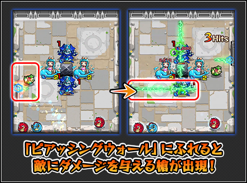 「ピアッシングウォール」にふれると、ふれた場所から敵にダメージを与える槍が出現!