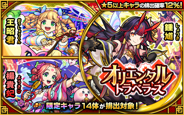 ※ガチャ「オリエンタル・トラベラーズ」の排出されないキャラクターや詳細および提供割合は、ガチャ画面よりご確認ください。