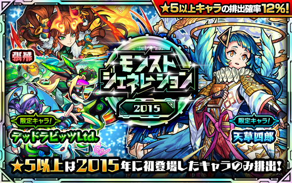 ◎ガチャ「モンストジェネレーション 2015」の排出対象の★5キャラクターはこちら