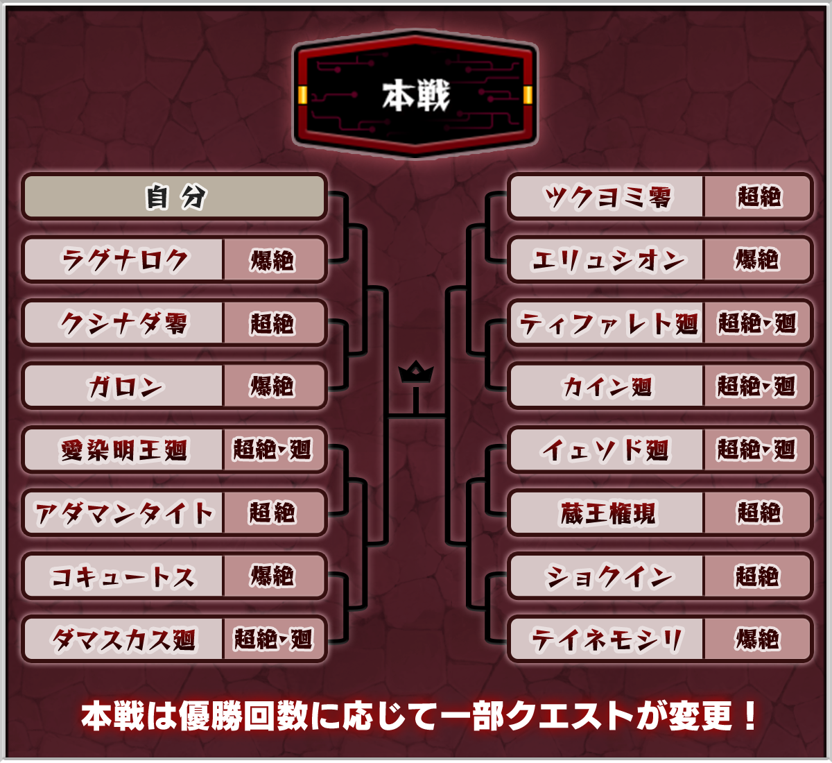 過去の「絶級トーナメント」の本戦で優勝している場合、優勝回数に応じて一部の本戦トーナメント出場クエストが変更になります!